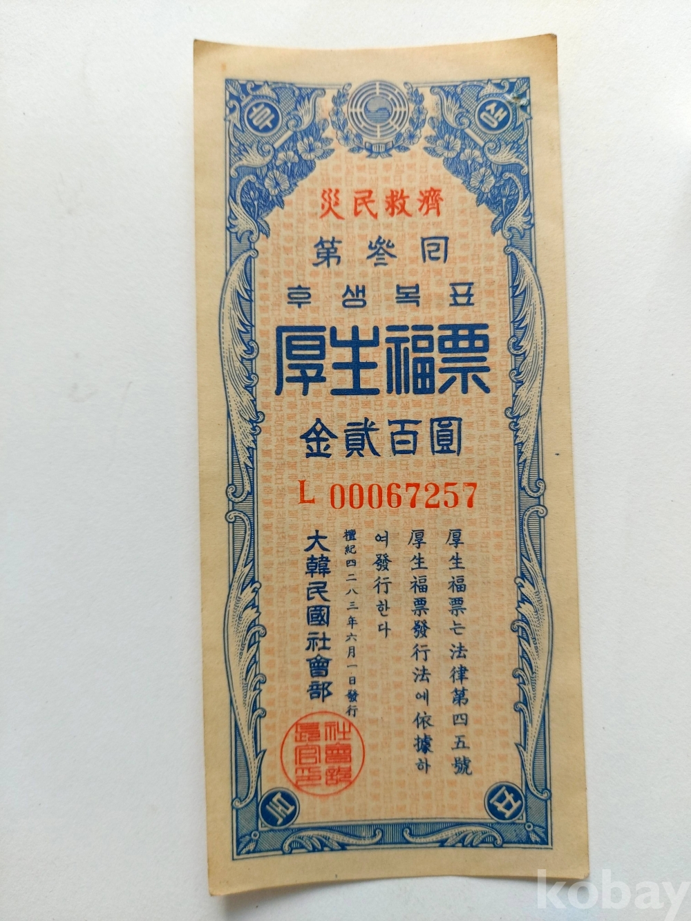 - 1949-1950년 재난기금마련으로 발행.
