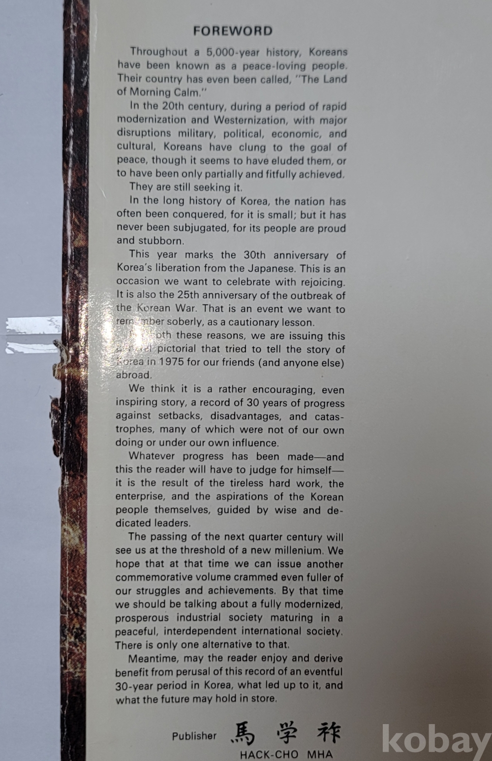 본서는 1975년 광복 30주년과 한국전쟁 발발 25주년을 기념하여 아시아 피알 센터(Asia PR Center)에서 발행한 영어판 종합 화보집입니다.