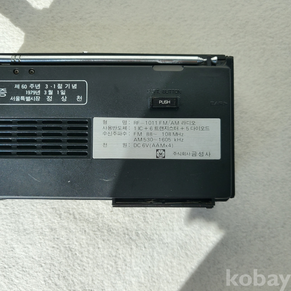 [제목]: [금성사/GoldStar] 휴대용 라디오 RF-1011 - 1979년 정상천 서울시장 3·1절 60주년 기념 증정 희귀 사료