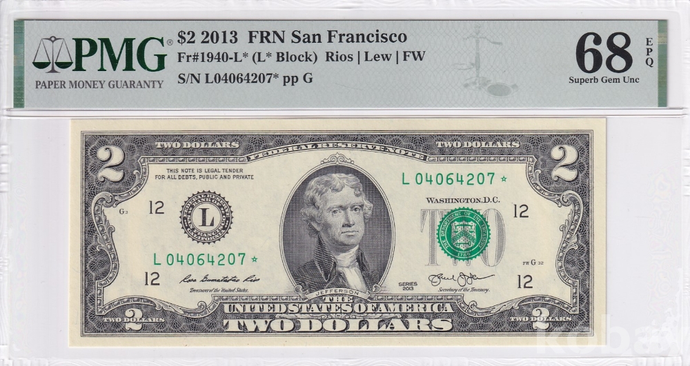 - 미국 2013년 샌프란시스코(L) 2달러 ★스타노트★ 보충권 - PMG 68 EPQ