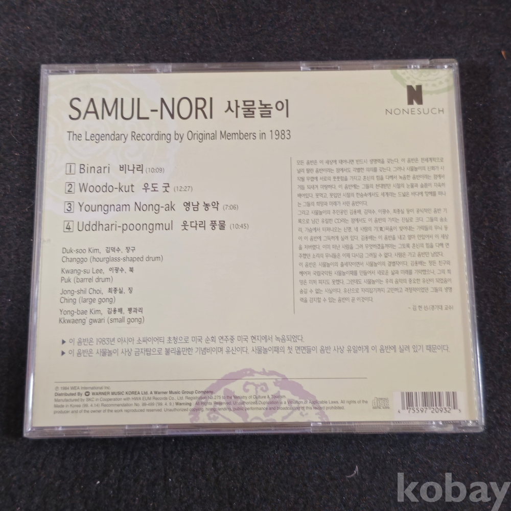 | CD 상태 | EX : 재생에 영향 없는 경미한 마모 | 북릿/케이스 상태 | EX : 주름, 사용감, 가벼운 긁힘 |