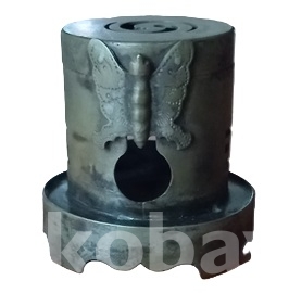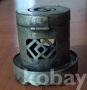 조선시대 휴연대의 전형으로 개폐가 되는 뚜껑이 있고 그 아래 통상에 둥근 받침이 있읍니다. 뚜껑에는 삼태극?이 투각되어 있고 담배대가 들어가는 입구의 상단을 가리는 나비가 부착되어 있읍니다. 통에는 앞면에 담배통 구멍과 뒷면에 마름모꼴이 겹쳐져 투각되어 있고 양옆면에는 8괘의 이離가 대칭으로 투각되어 있읍니다. 하단부는 다리에 박쥐형으로 만들어 아름다움을 더했고.. 하여튼 희귀한 기물로 완전 박물관급이고.. 물건이 그래선가 경매당시 많은 입찰자가 몰려 경쟁도 치열했지요. 상태는 사진에 보시듯 검푸른 녹소와 땟물 등 세월의 흔적들 보이는외 뚜껑의 개폐도 아주 정상적이고 흠잡을데 없읍니다