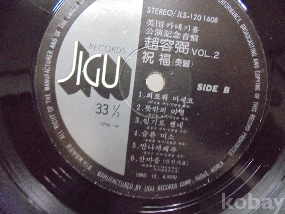 | 자켓상태 | EX : 약간의 마모, 모서리 찢김 존재 | 음반상태 | VG : 생활 기스 다수, 가벼운 노이즈 존재 | 발매정보 | 알수없음 | 가사지여부 | 유 |
