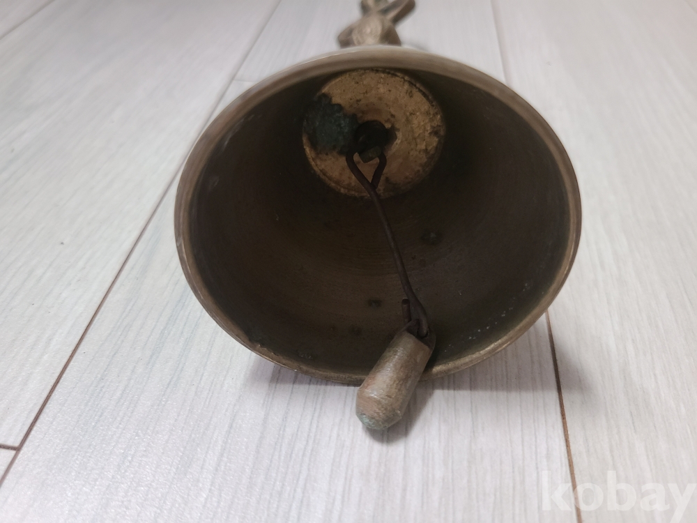 이 물품은 손잡이와 종 부분이 연결된 형태의 손종입니다.