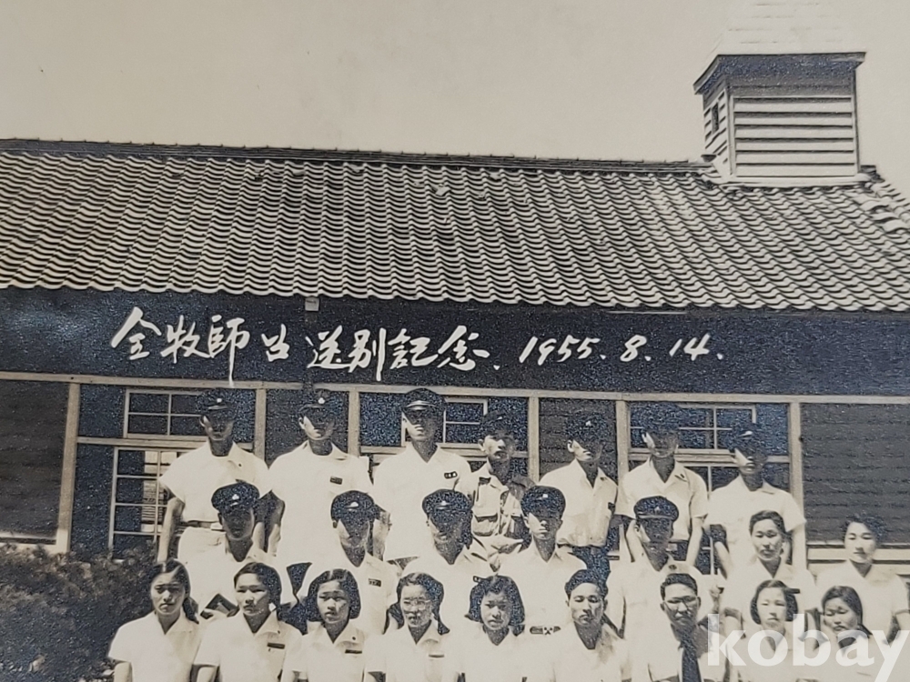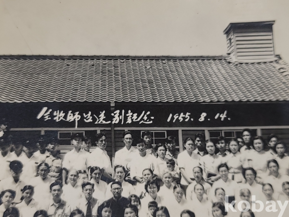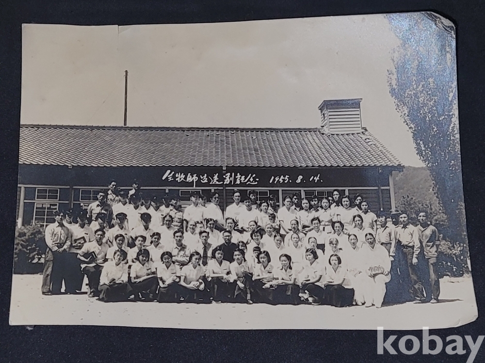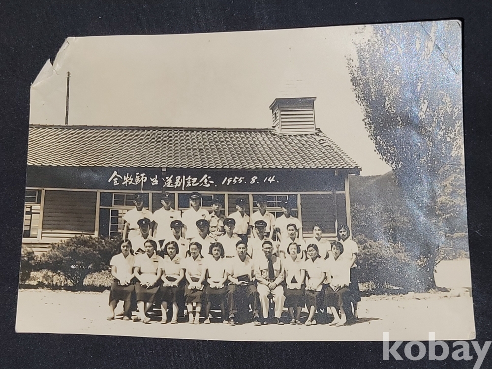 빈티지 세월 감이 느껴지는 1955년 송별 기념 단체 흑백사진 2장 일괄입니다.
