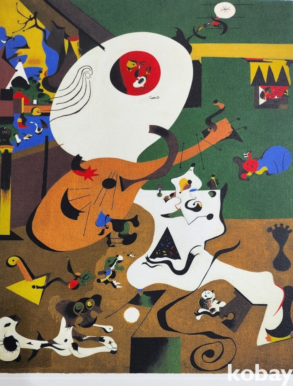 스폐인의 유명 서양화가 로안미로 사인이 보이는 압인 판화입니다,