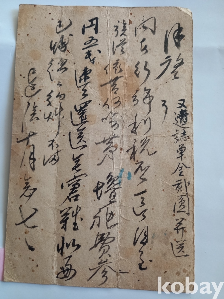 간찰 42) 양영권, 양봉규선생이 양성택에게 보낸 엽서