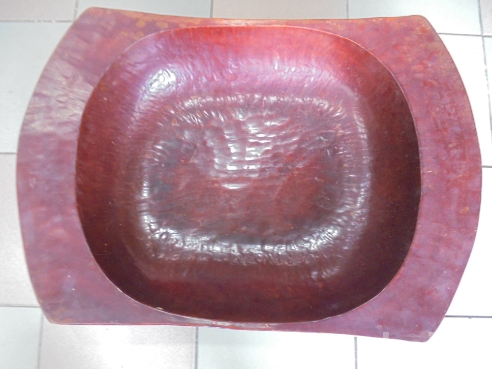 손자귀로 깍고파낸 자국이완연한 피니무류로 대형인 옻칠하고 균형잡히고 깨지고 금간데없는 큰고 대형인 완벽한 오래된 손으로파낸 피나무 큰함지