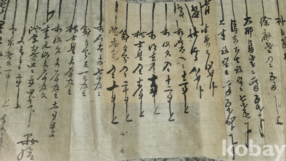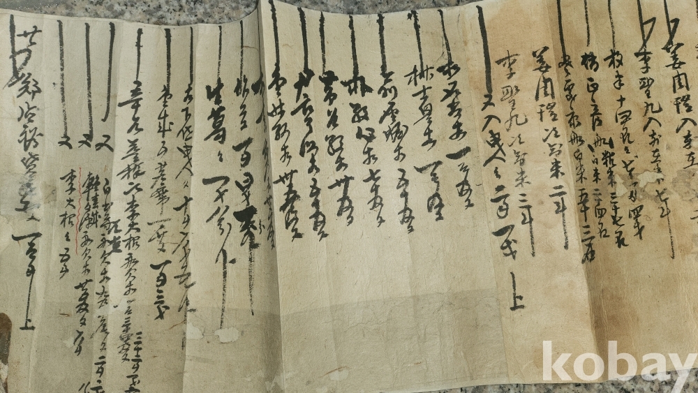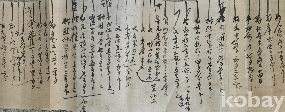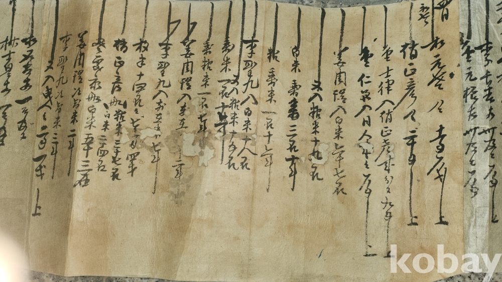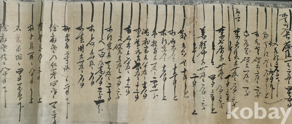 甲寅 十月 上吉辰 ( 1852년 갑인년) 으로 추정되는 길이가 매우 큰 서예품입니다,