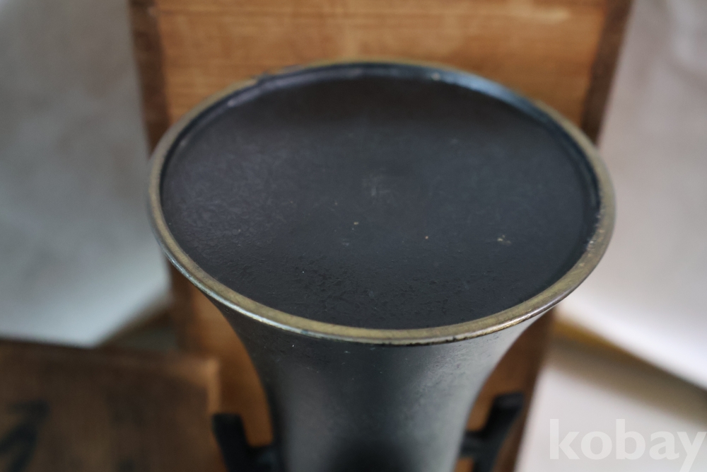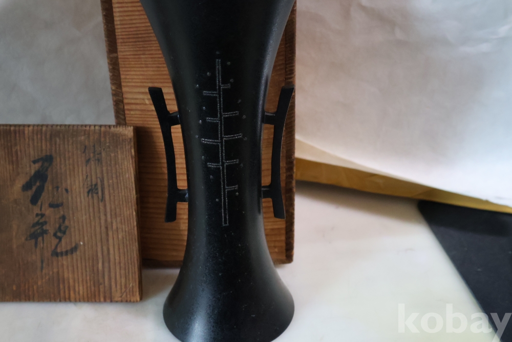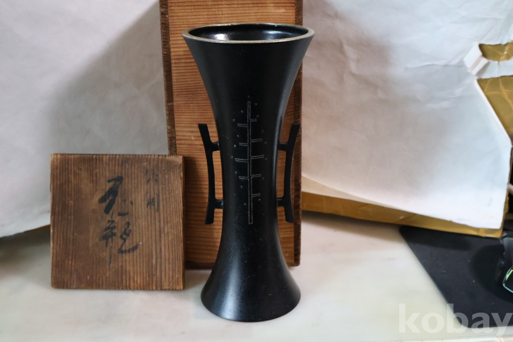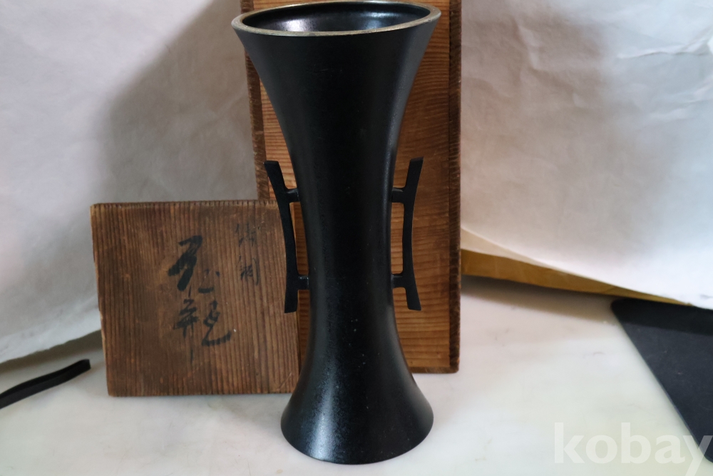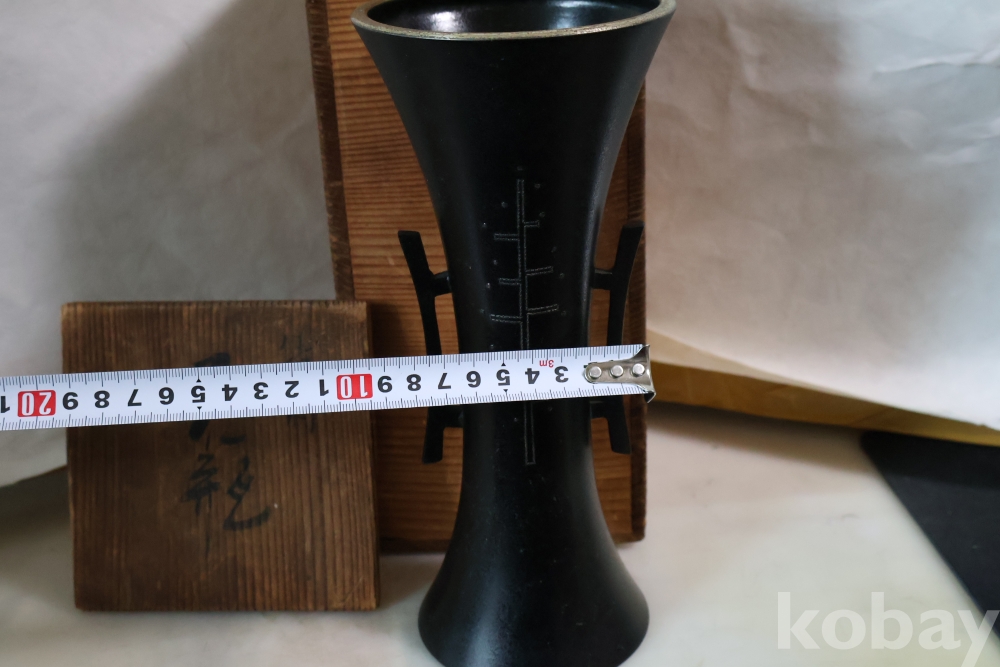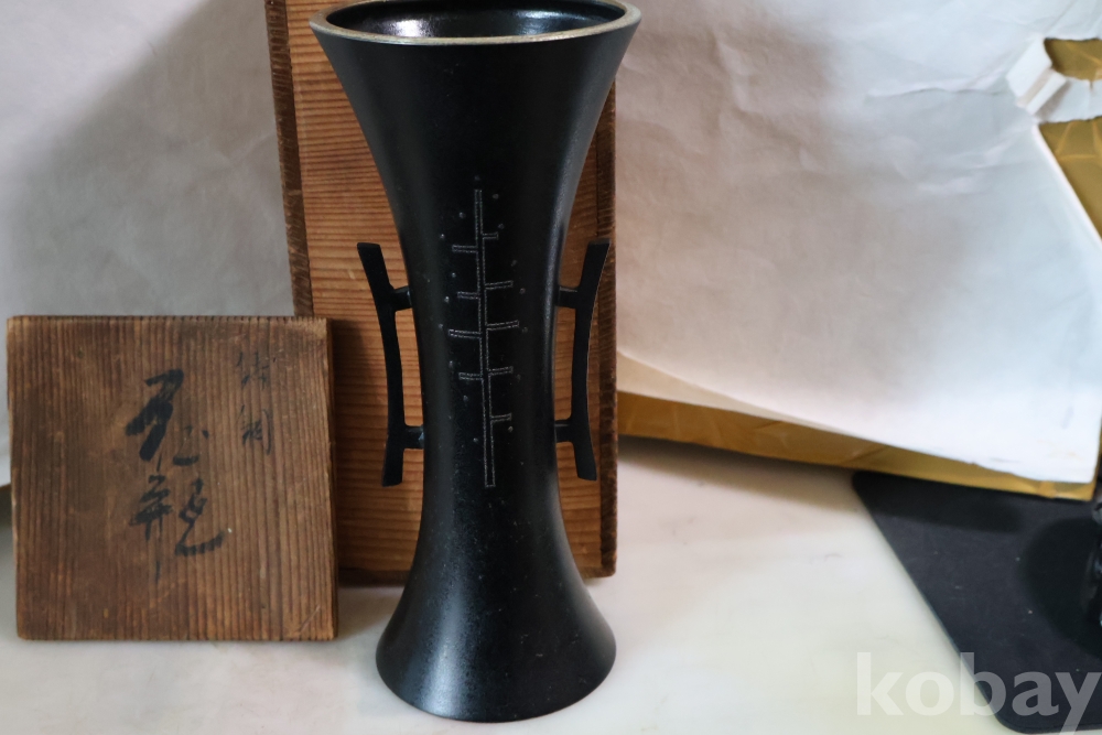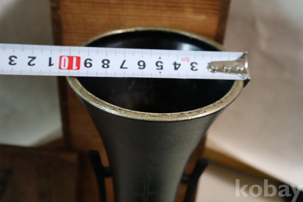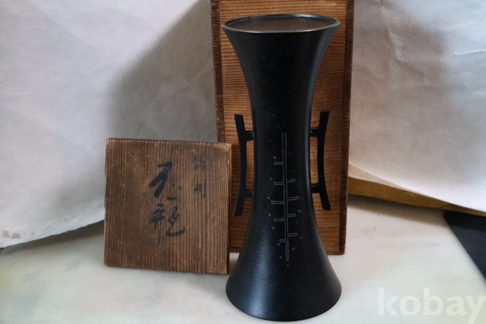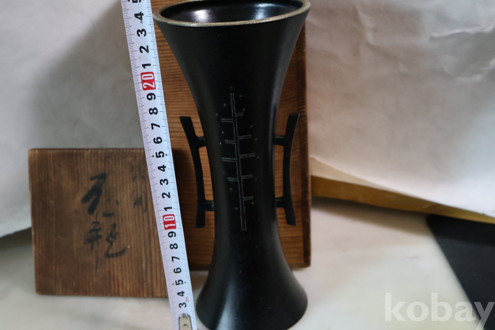 오리지날 상자에 보관해온 청동 화병 임니다 작가의 낙관이 보임니다 묘한 조각된 문양이 특이한 명품 임니다 상감처리 된 작가의 노력이 대단 함니다 사용감을 가진 당대의 명품 이며 상자는 세월의 흔적이 보임니다