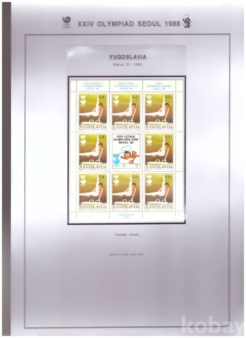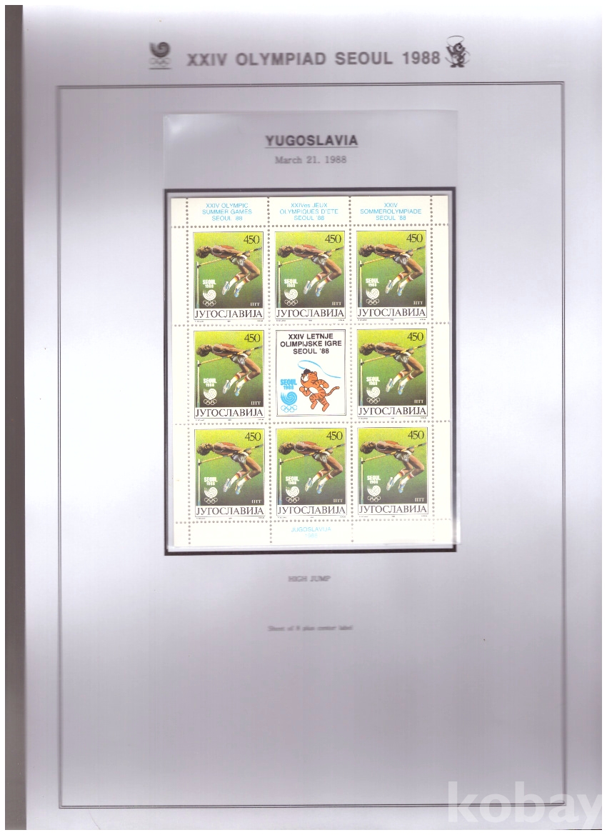 (서울올림픽) Yugoslavia(유고슬라비아) 1988.3.1 농구외 4완 sheet of 8+label MNH