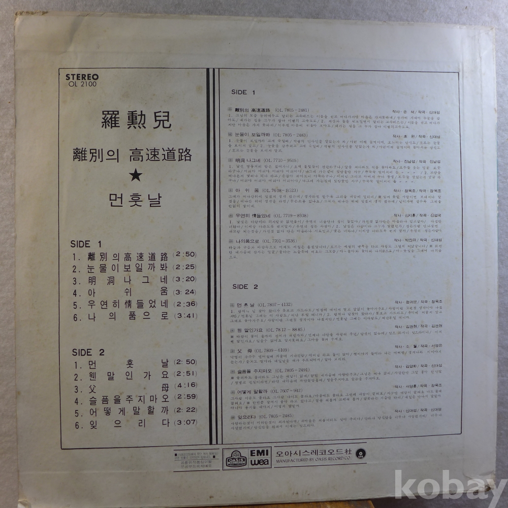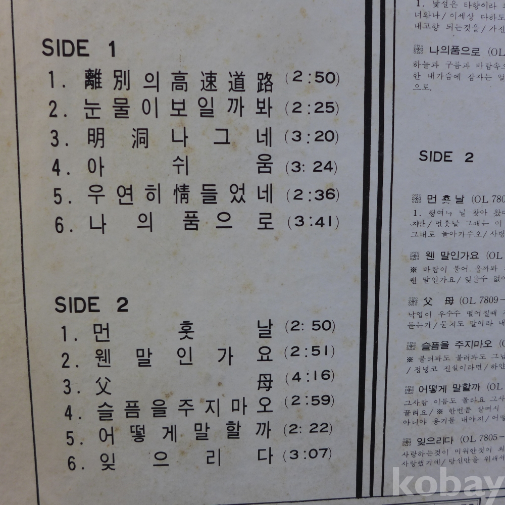 | 자켓상태 | EX : 약간의 마모, 모서리 찢김 존재 | 음반상태 | EX : 재생에 영향 없는 가벼운 기스 존재 | 발매정보 | 초반 | 가사지여부 | 무 |