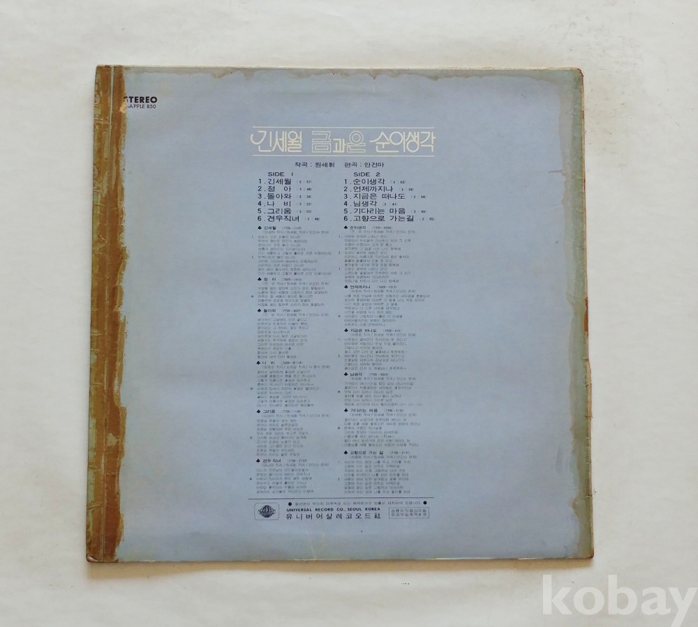| 자켓상태 | EX : 약간의 마모, 모서리 찢김 존재 | 음반상태 | NM : 개봉했으나 미사용급, 스크래치 없음 | 발매정보 | 알수없음 | 가사지여부 | 무 |