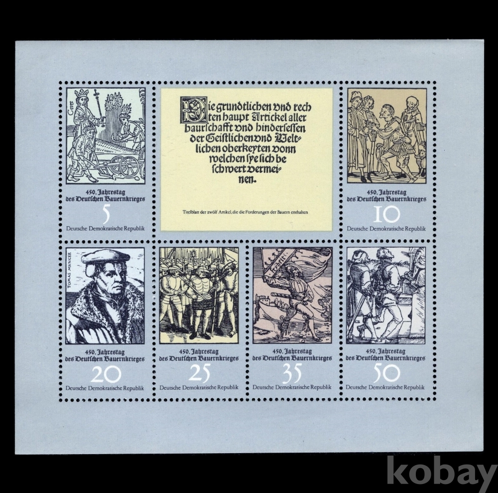 동독) 1975년 독일 농민전쟁 450주년(강제 노동,십일조를 내는 농민,토마스 뭔처,무장한 농민들,'자유' 깃발,농부의 재판)