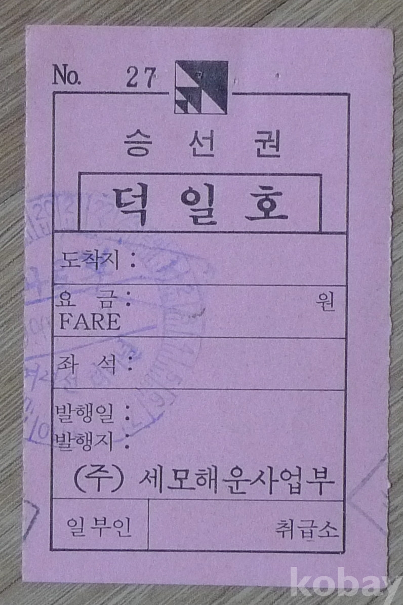 1990년대 세모해운사업부 덕일호 승선권
