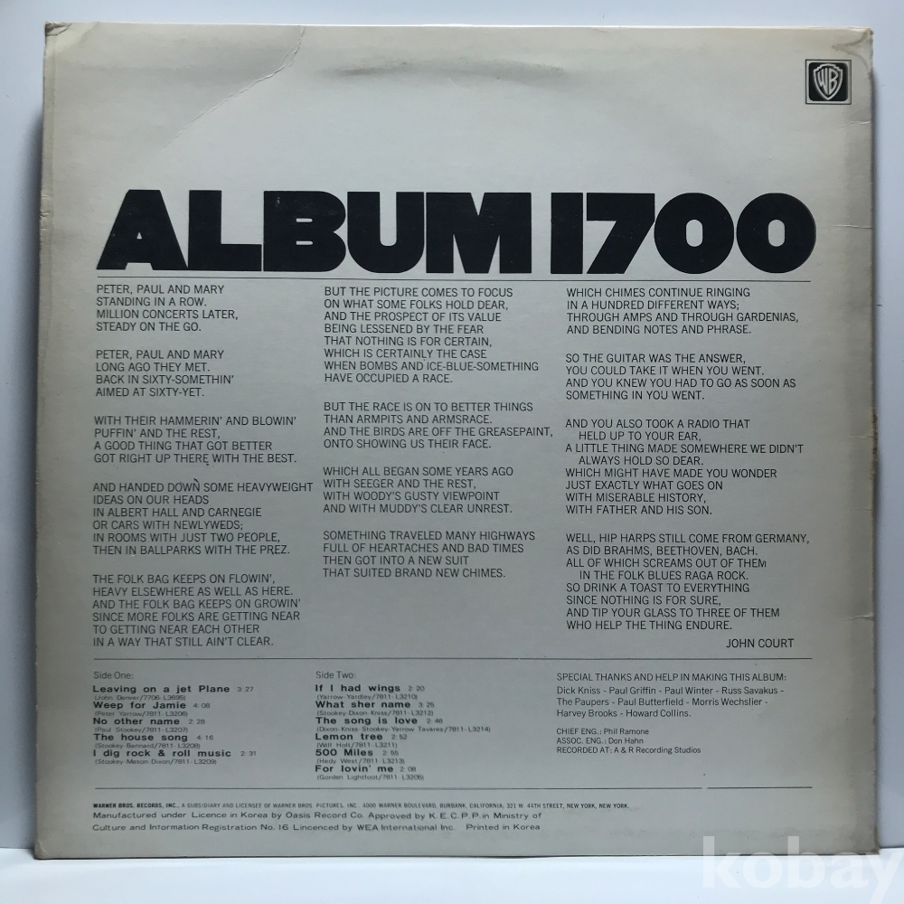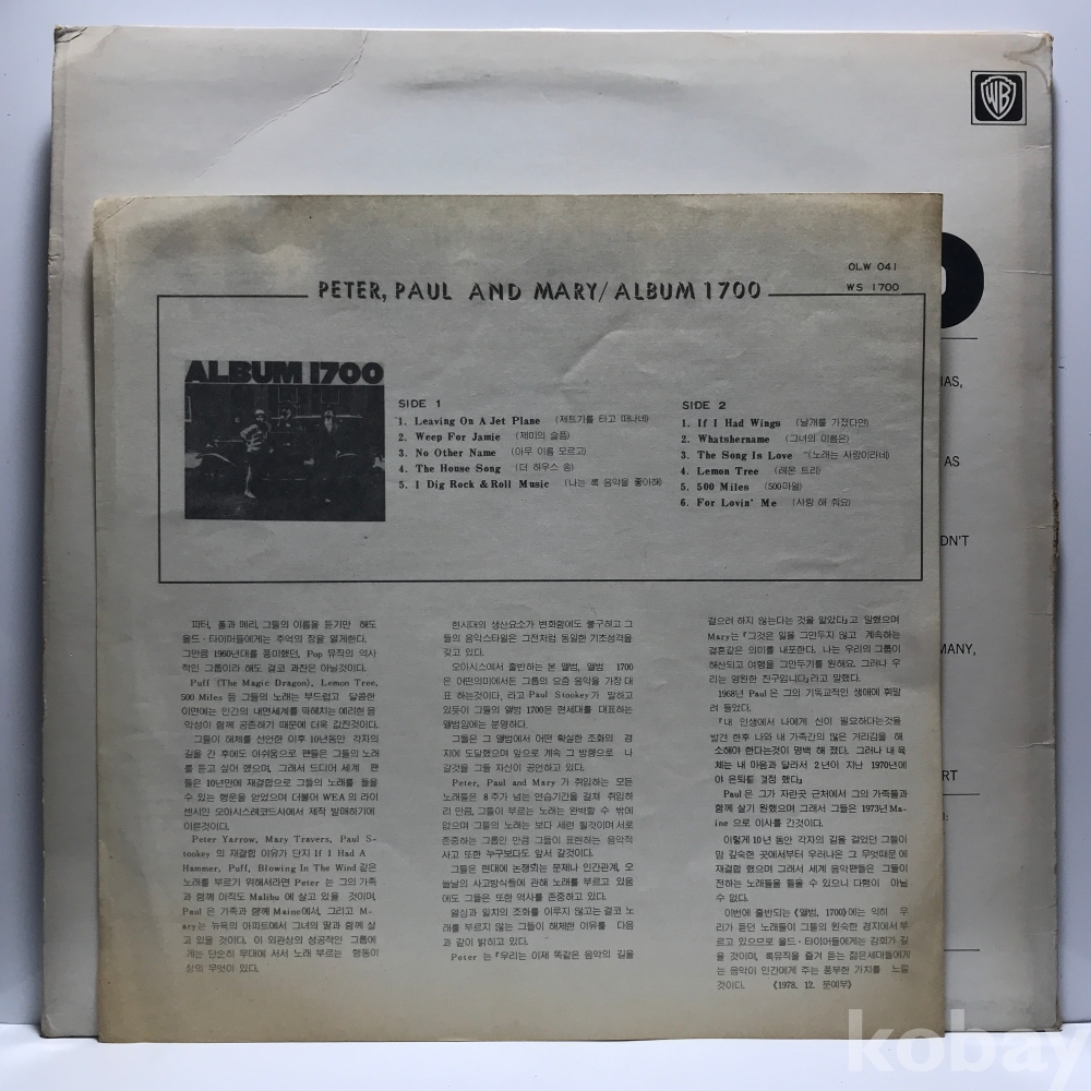 LP 22,480-22 Peter, Paul and Mary - Album 1700 _ 자켓 EX- 알판 EX 79 년 국내반