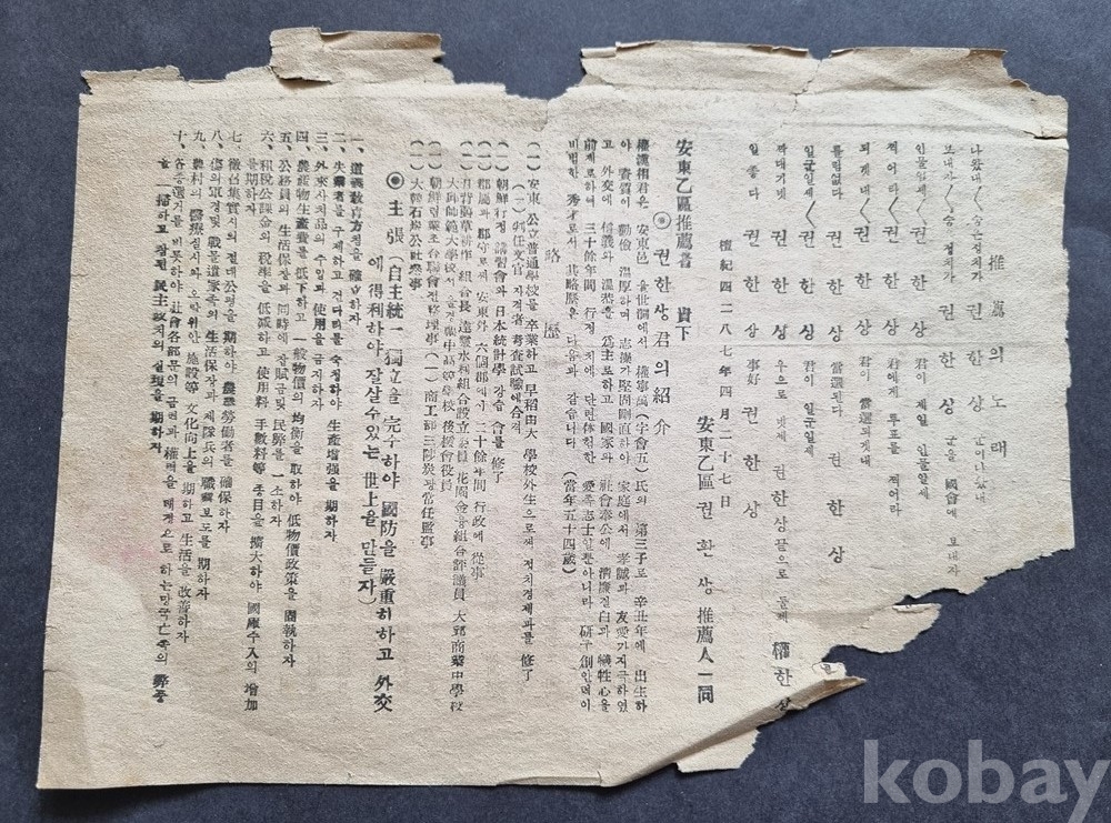 1950년대(한국전쟁 직후)의 선거 사료는 종이 질이 좋지 않아 소실된 경우가 많습니다.
