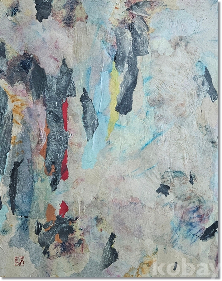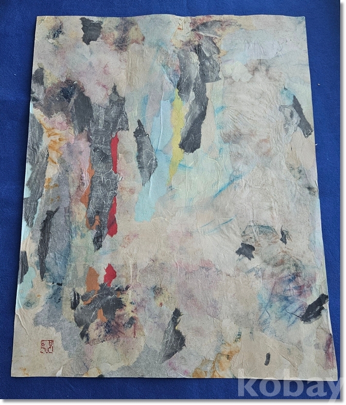 한지를 여러겹 붙인 뒤에 채색