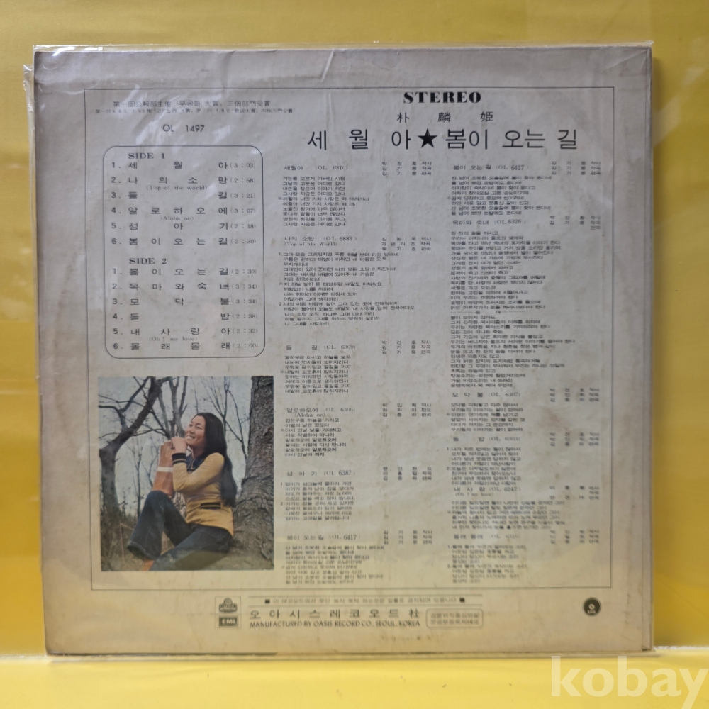 상품 설명 | Side A 1. 세월아 2. 나의 소망 3. 들길 4. 알로하오에 5. 섬아기 6. 봄이 오는길 Side B 1. 봄이 오는길 2. 목마와 숙녀 3. 모닥불 4. 돌밤 5. 내사랑아 6. 몰래 몰래 |