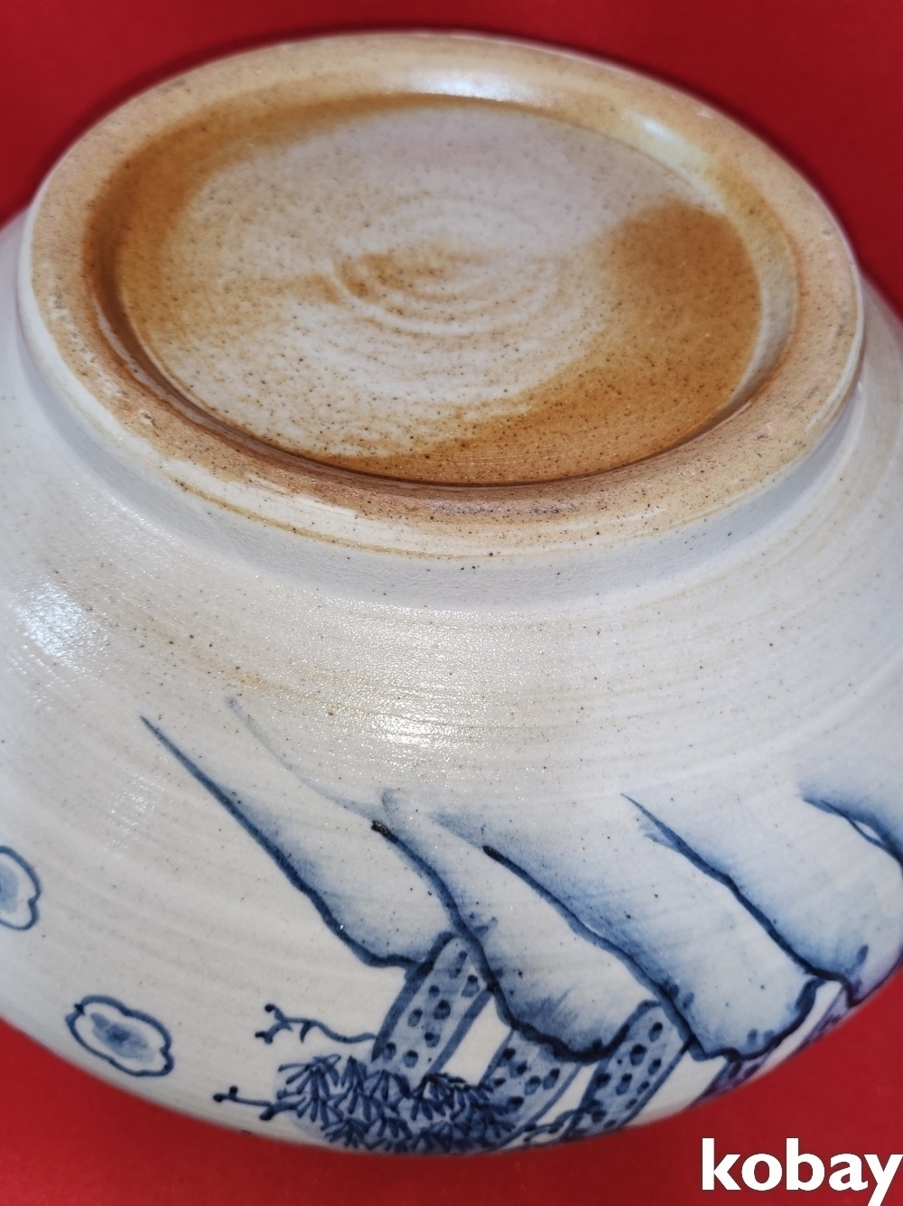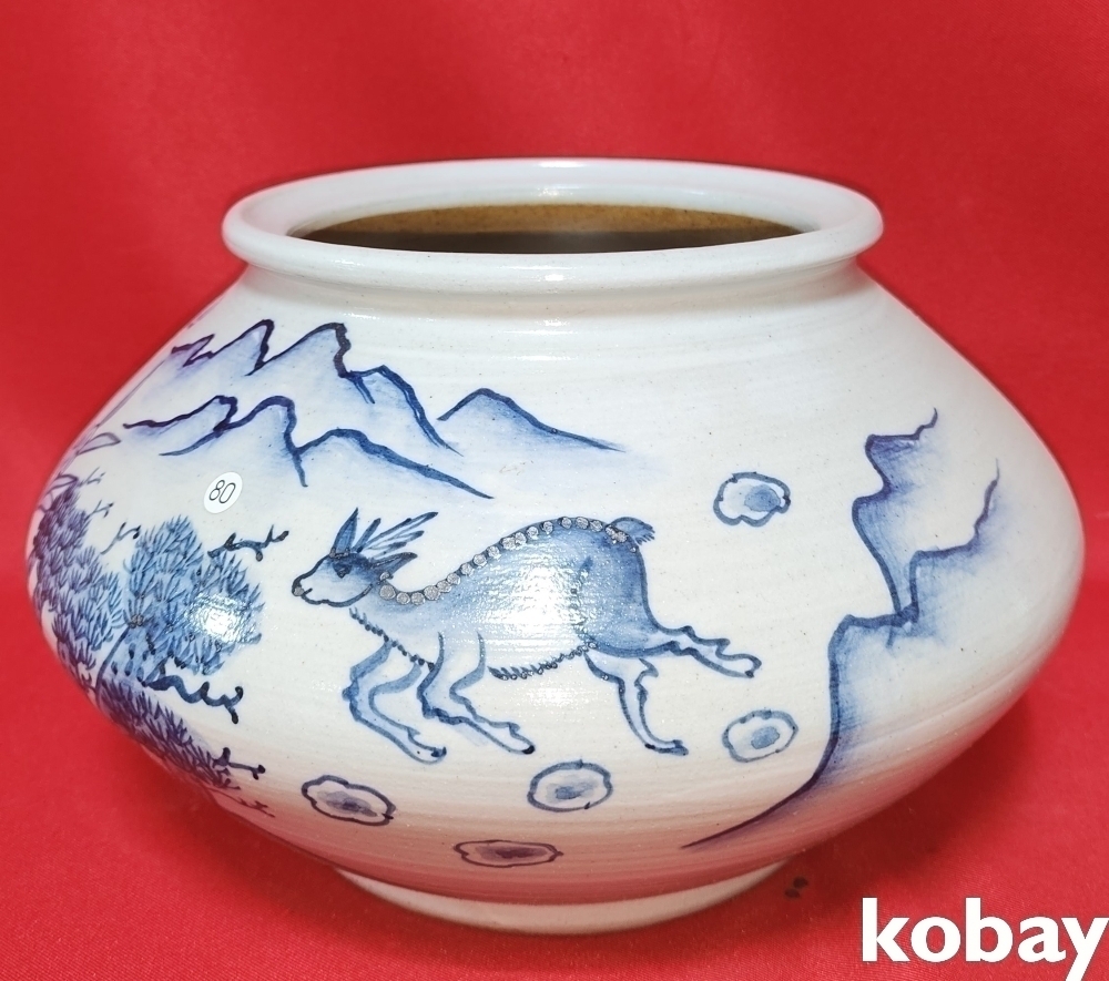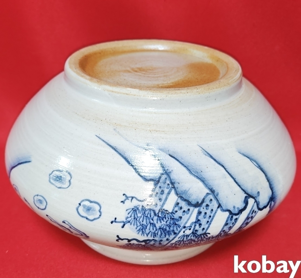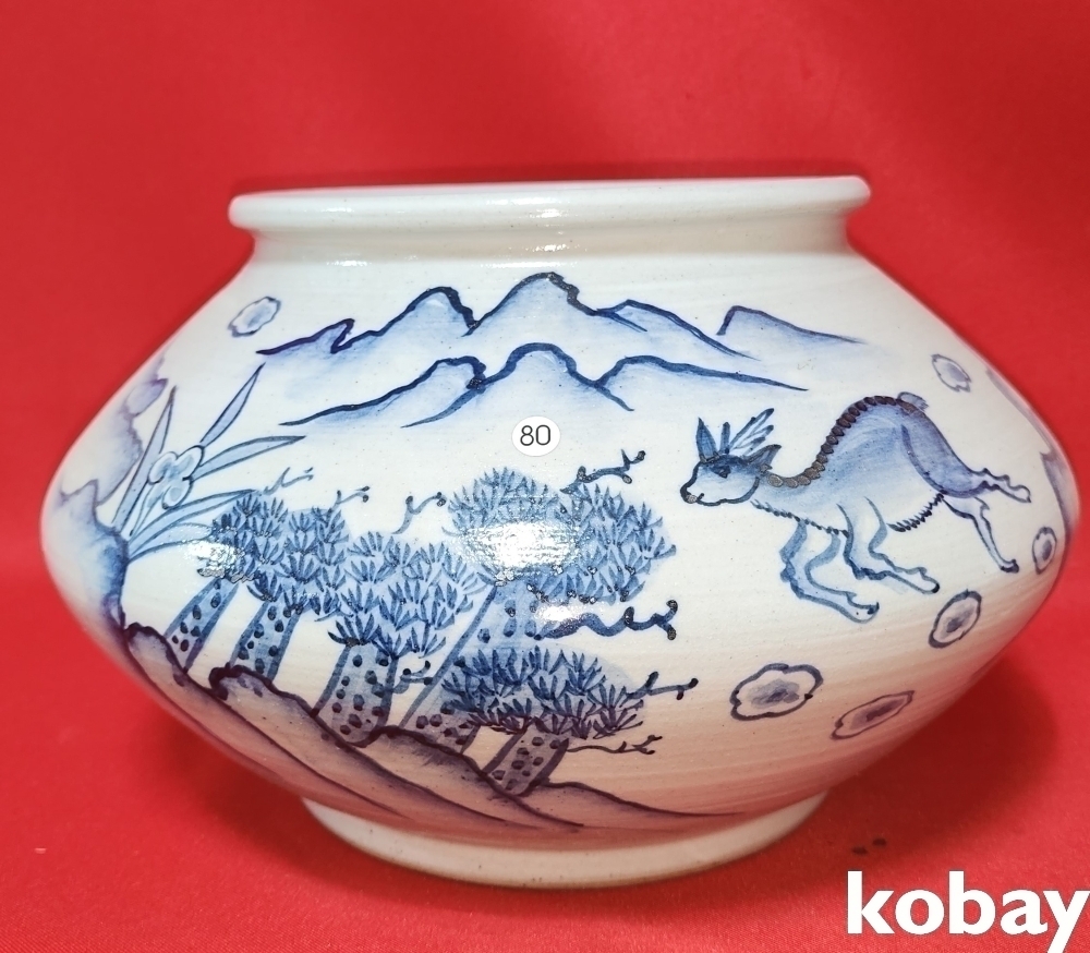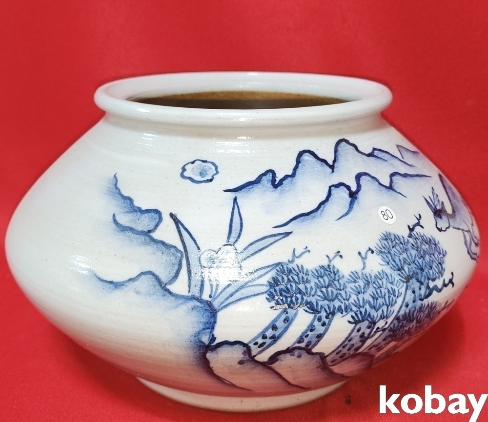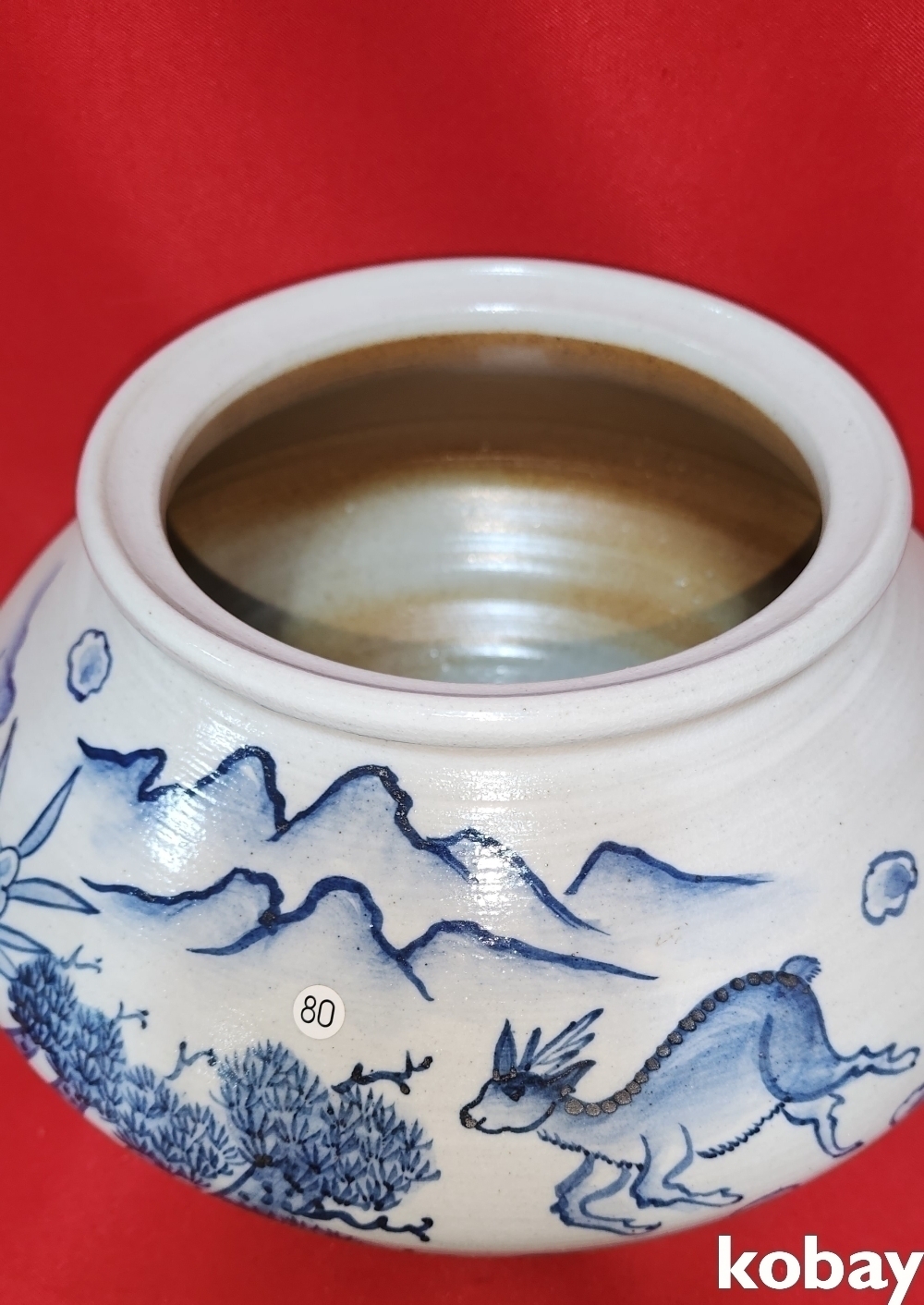 청화백자 장생도 문양 바둑알 형 도자기입니다,
