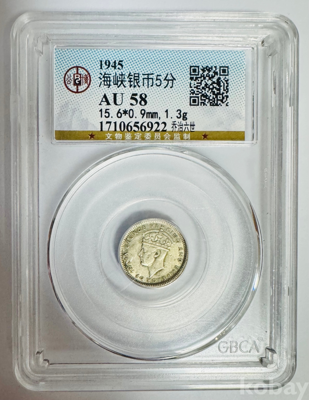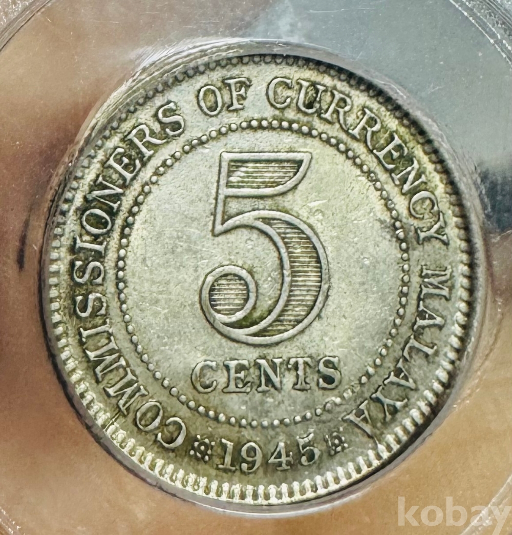 [은화] 1945년 말라야 해협 5센트 은화 AU 58