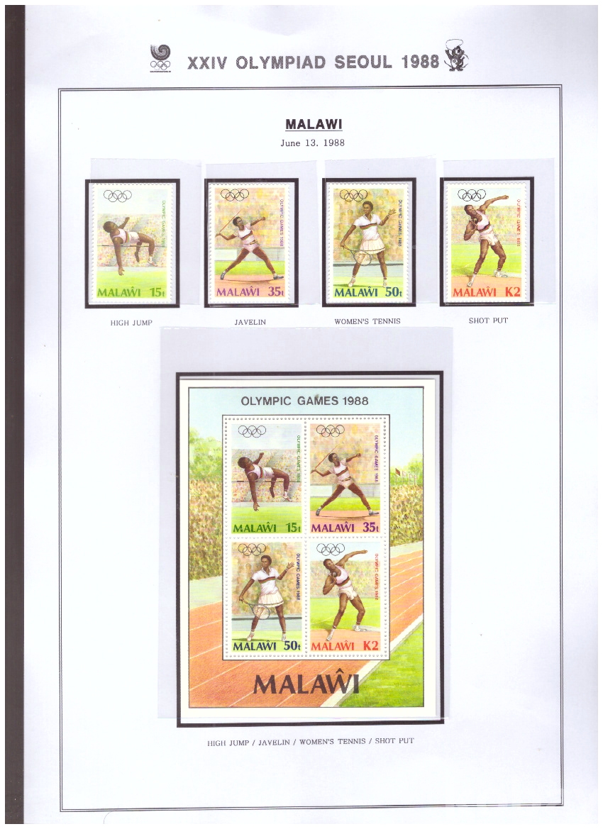 (서울올림픽) Malawi(말라위) 1988.6.13 높이뛰기외 4완+sheet of 4 MNH