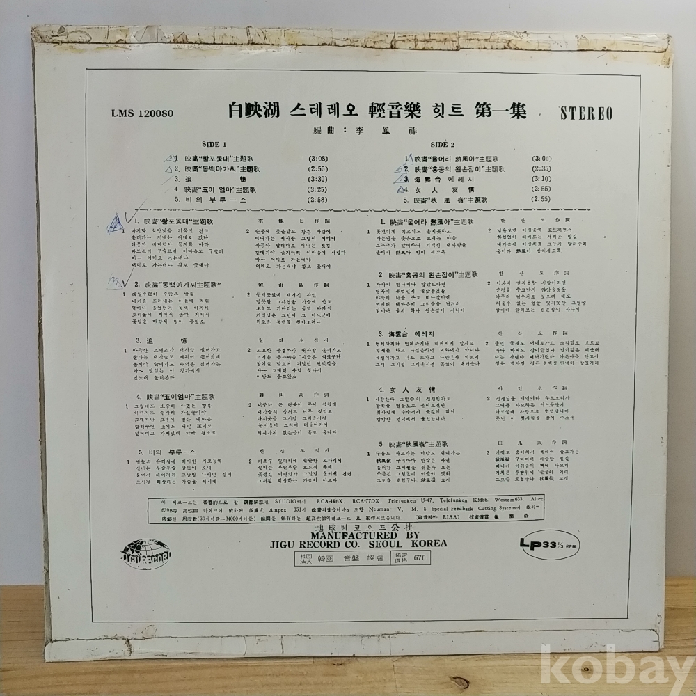 | 자켓상태 | EX : 약간의 마모, 모서리 찢김 존재 | 음반상태 | EX : 재생에 영향 없는 가벼운 기스 존재 | 발매정보 | 초반 | 가사지여부 | 무 |