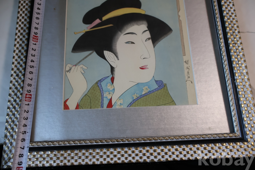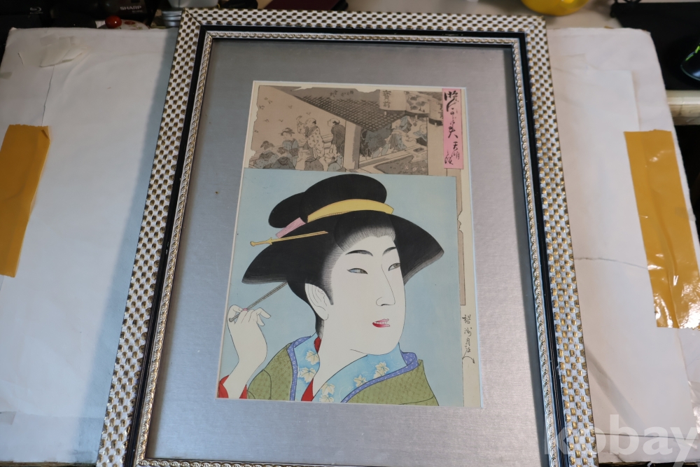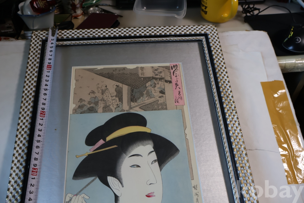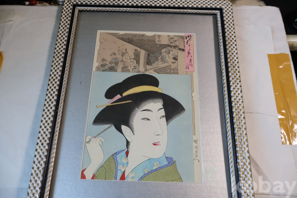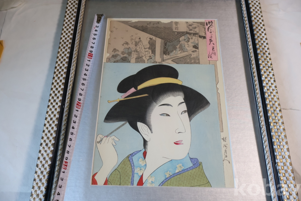 섬세 정교 우아함 본홍색감의 얼굴 처리 등등 전세계적인 수집목판화 이며 제작 년도가 보이는 명화 임니다 치가노부의 명작 미인 목판화 원본 Artist: Chikanobu Yoshu (1838-1912) 액자 역시 이태리 액자를 가진 명화 임니다