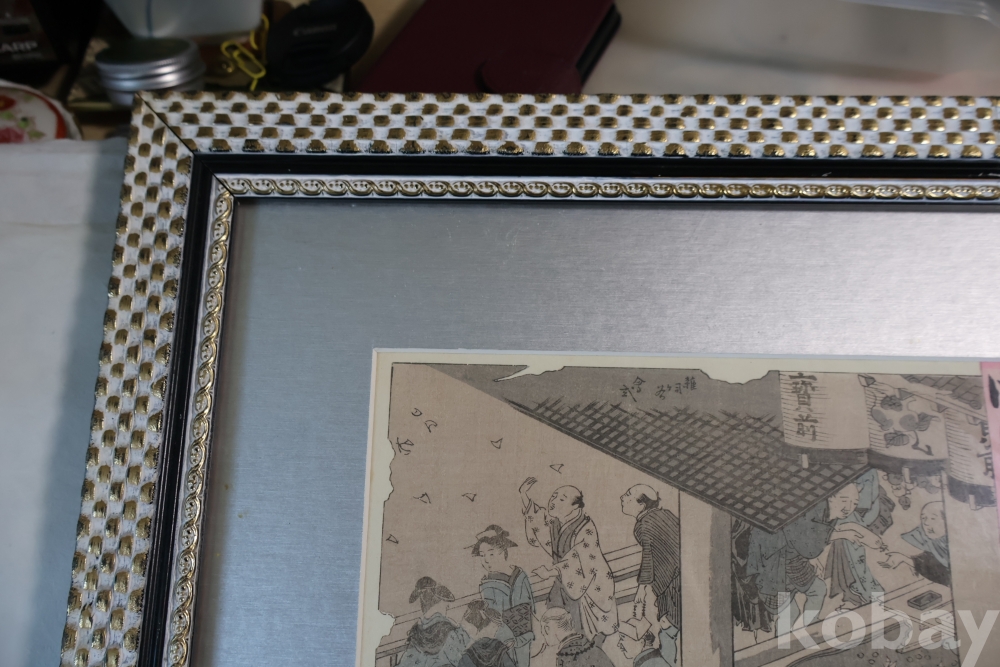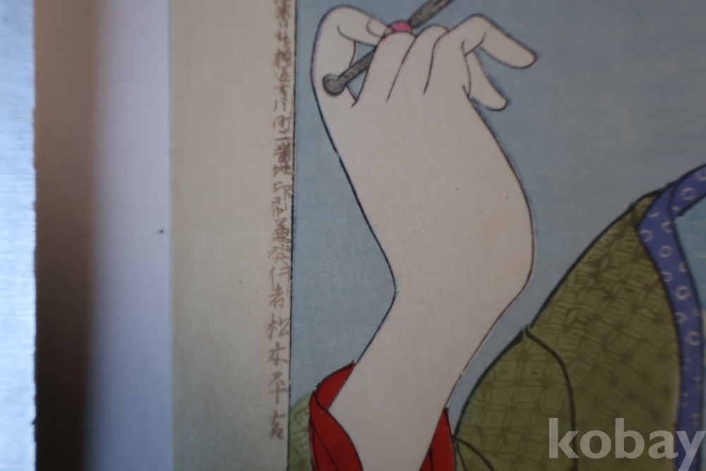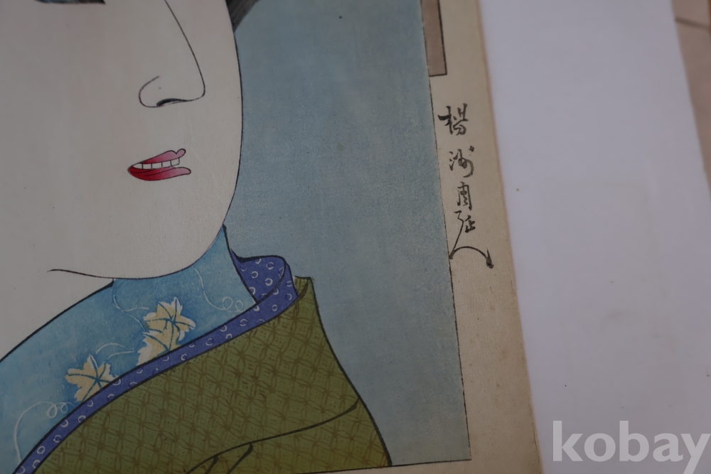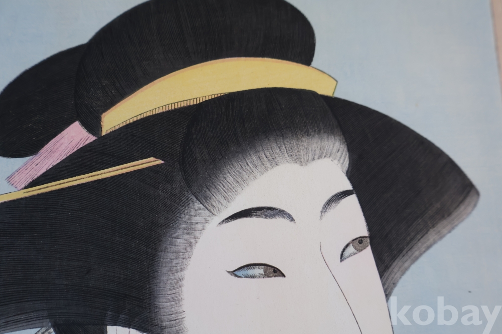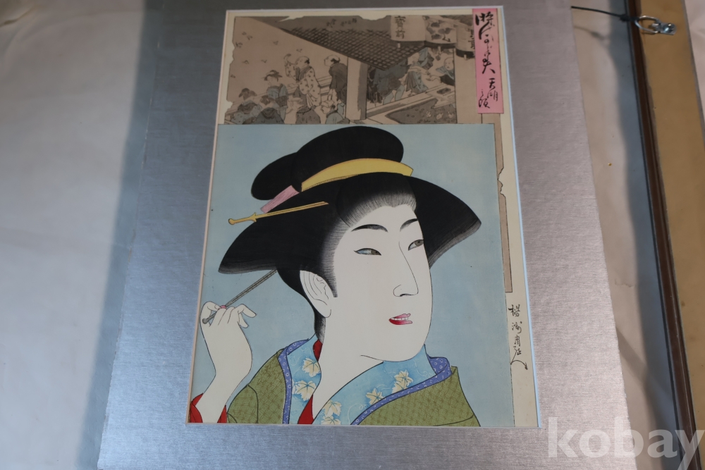 섬세 정교 우아함 본홍색감의 얼굴 처리 등등 전세계적인 수집목판화 이며 제작 년도가 보이는 명화 임니다 치가노부의 명작 미인 목판화 원본 Artist: Chikanobu Yoshu (1838-1912) 액자 역시 이태리 액자를 가진 명화 임니다