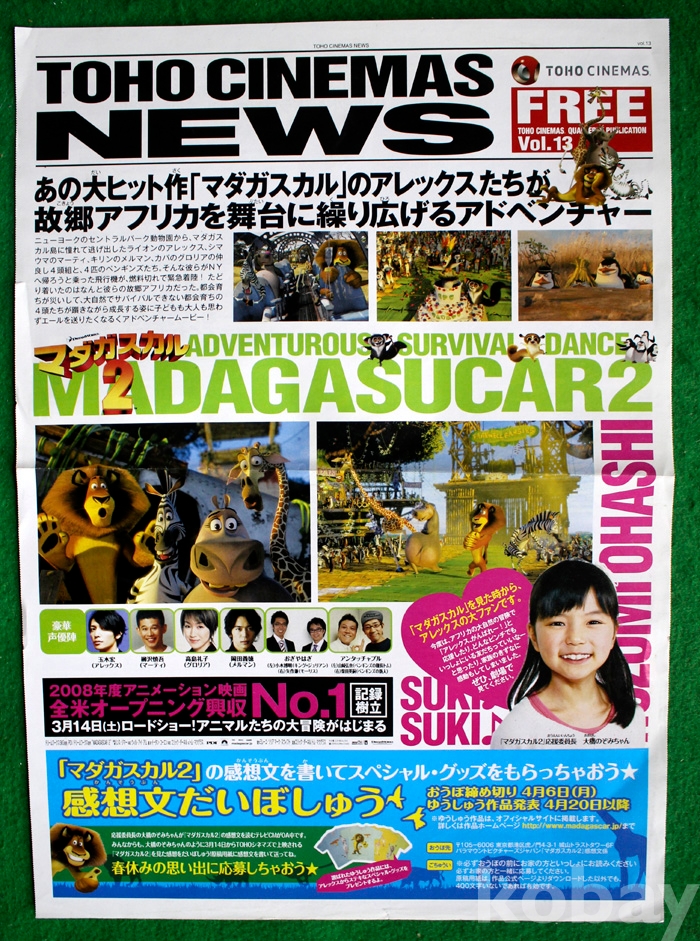 (영화자료) 마다가스카 2 '홍보 신문' - 2009년. Toho cinemas news vol.13