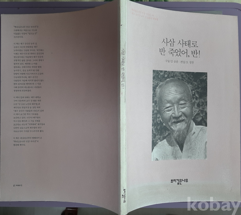 민중자서전14 제주 중산간 농민 김승윤의 한평생(사삼 사태로 반 죽었어, 반!)-1991년초판 뿌리깊은나무 발행