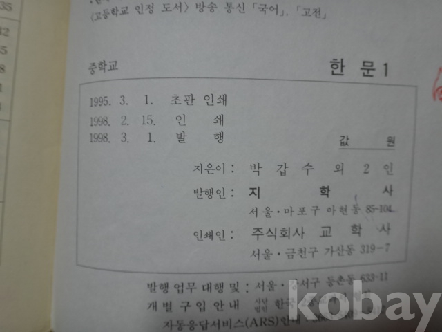 (중학교) 한문 1 (1998년, 박갑수 외2인 저, 지학사)