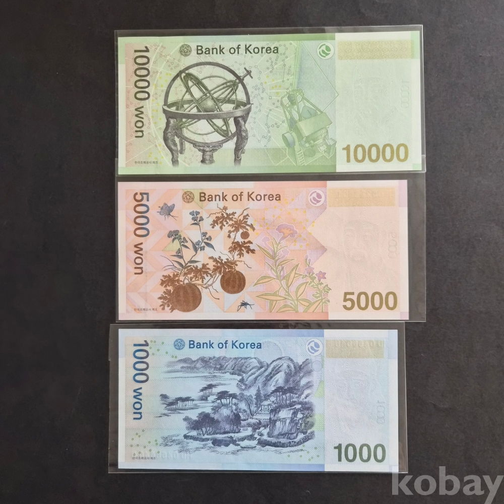 한국은행권 천원, 오천원, 만원 봉레이더 지폐 일괄 이며
