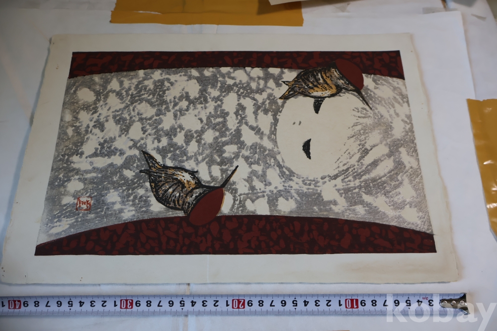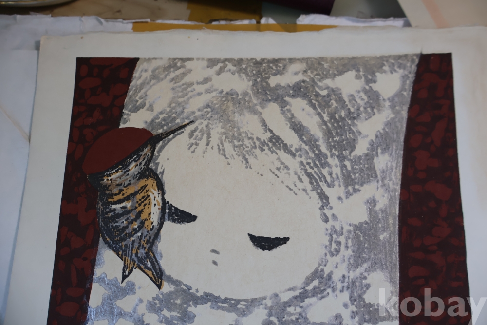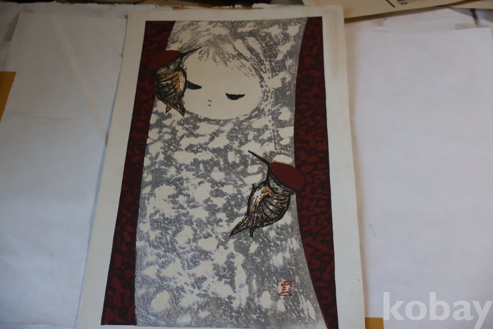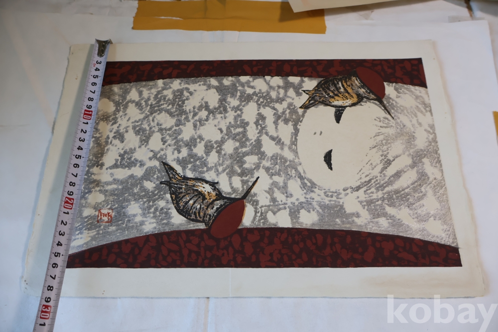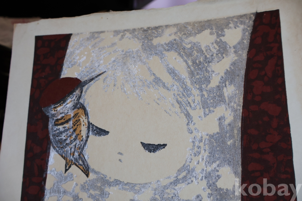 일본 현대 판화의 대가 가와노의 원본 목판화 임니다 은 마이카 처리 된 귀한 디자인을 가진 명화 임니다