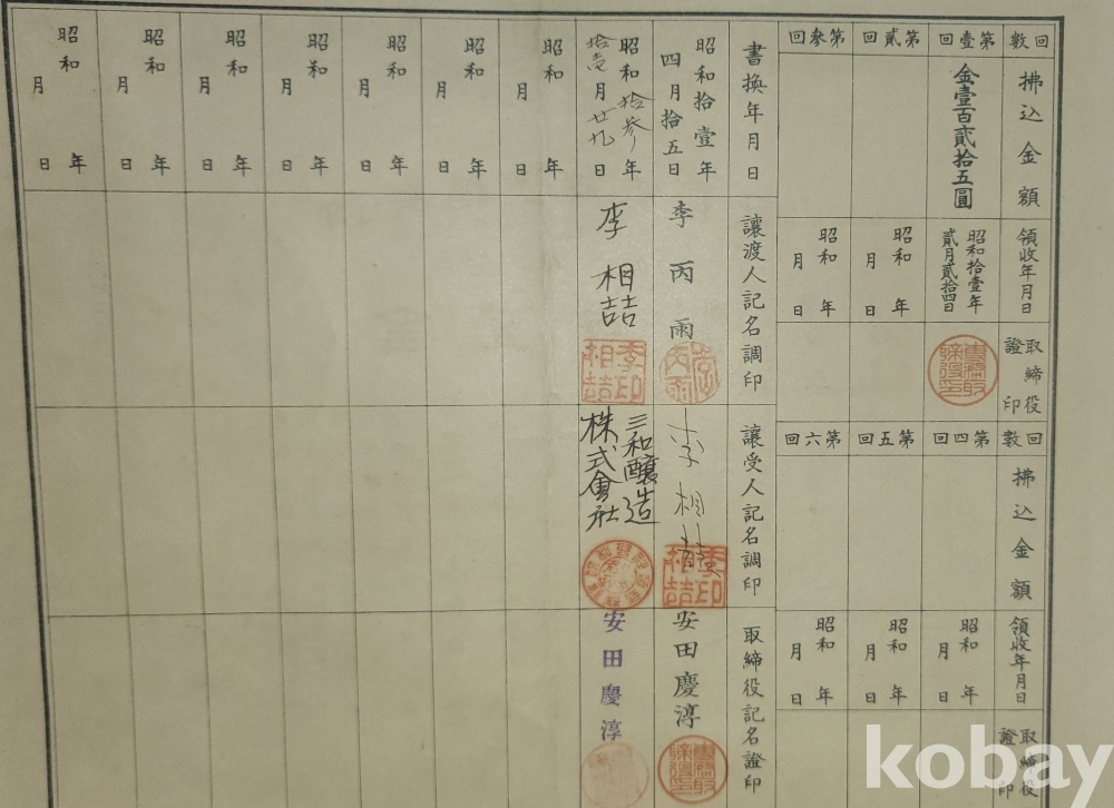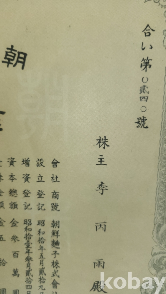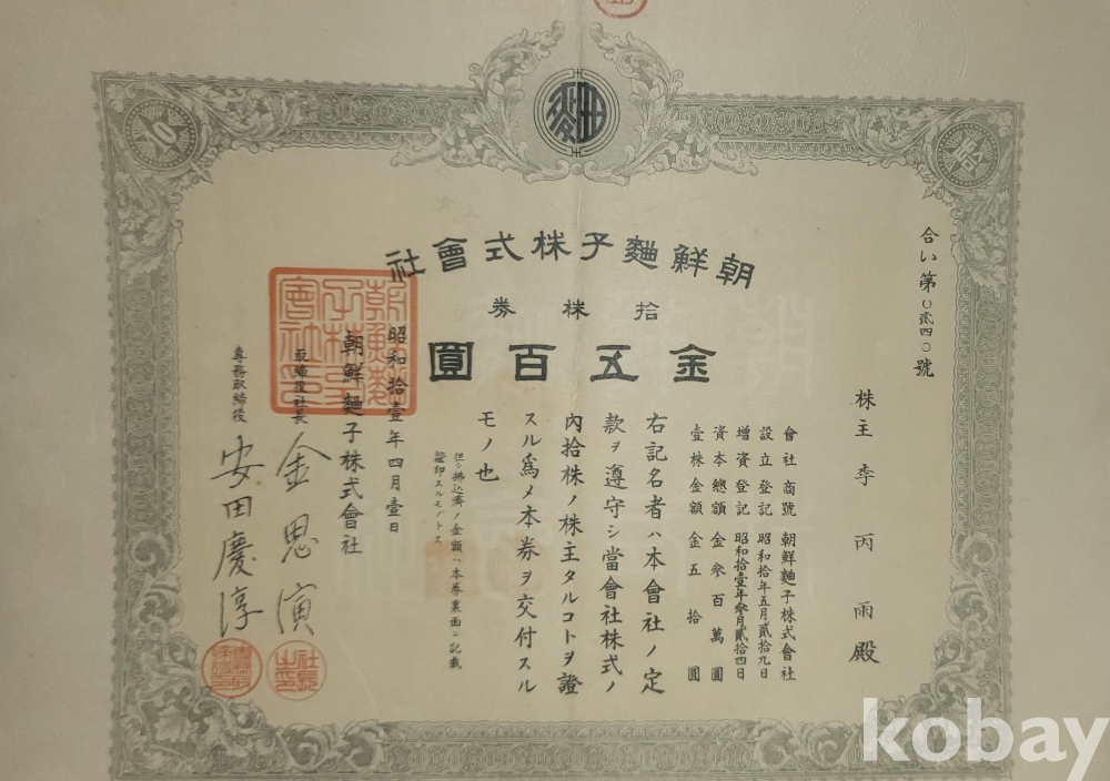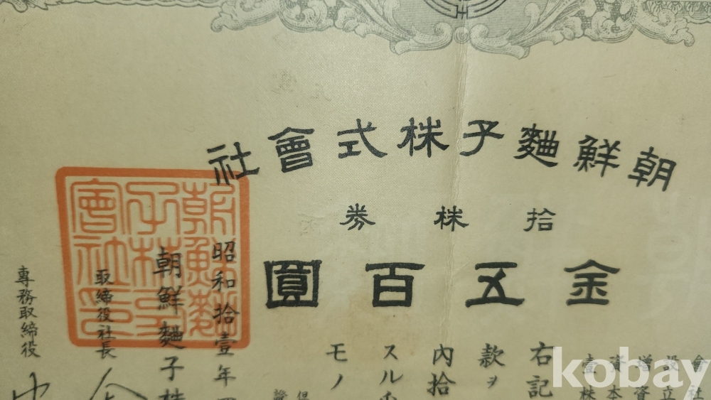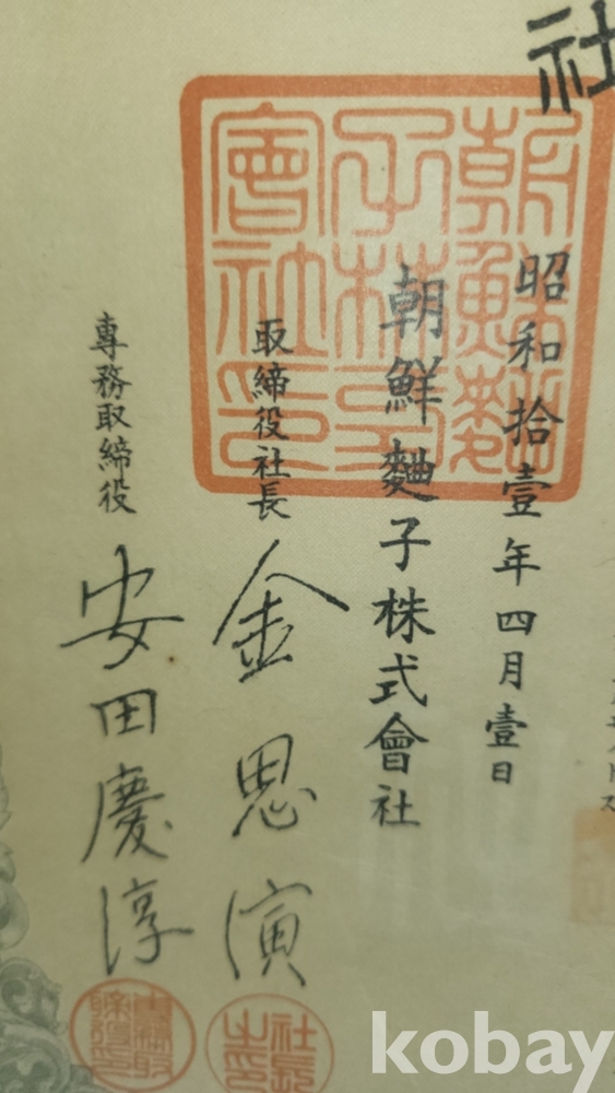 1936년(쇼와11년)조선식산은행 (朝鮮殖産銀行)에서 발행한 주식증서입니다,