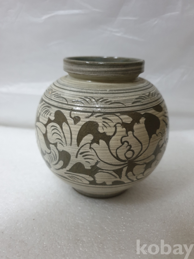 {천원경매} 4-0059 베이지 꽃무늬 도자기 (6*12)