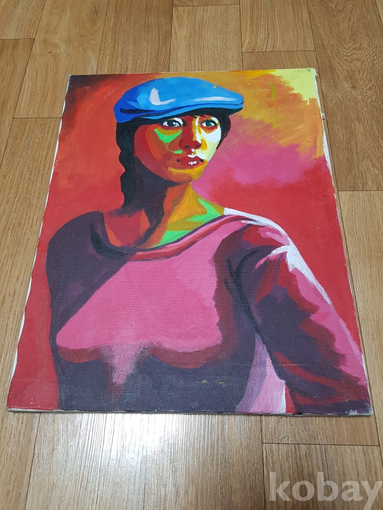 파란 모자와 붉은옷의 소녀 유화 1점 입니다