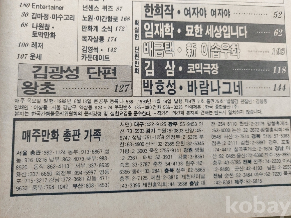 - 1990년 1월 14일 발행.(매주 목요일발매)