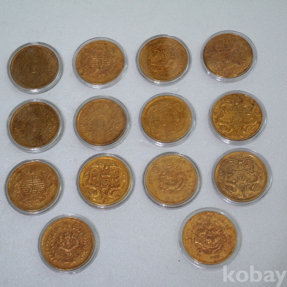옛날 동전을 재현해서 만들어진 글자나 문양이 각기다른 동전 14점 입니다.