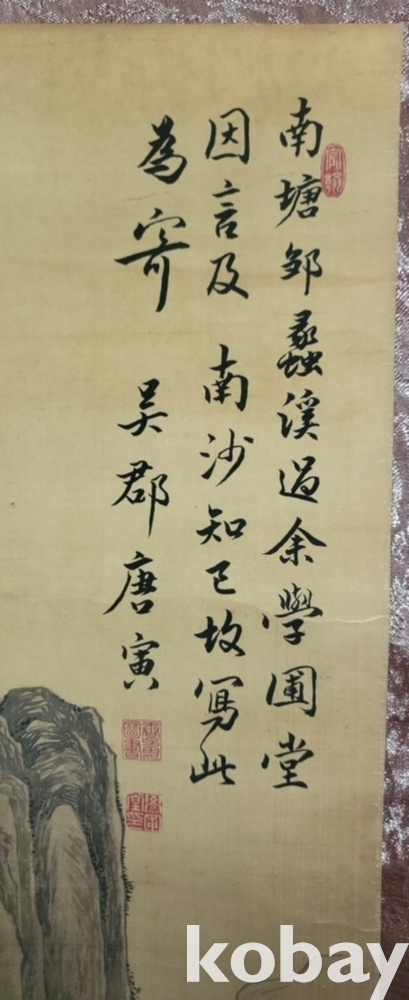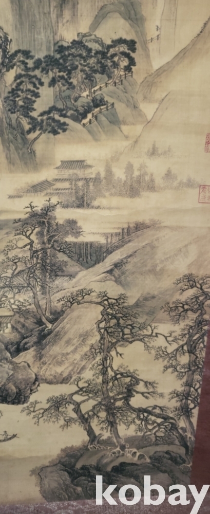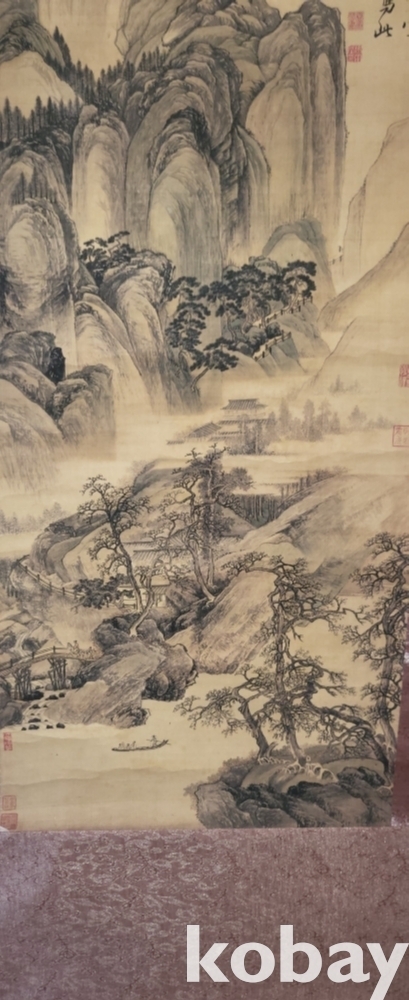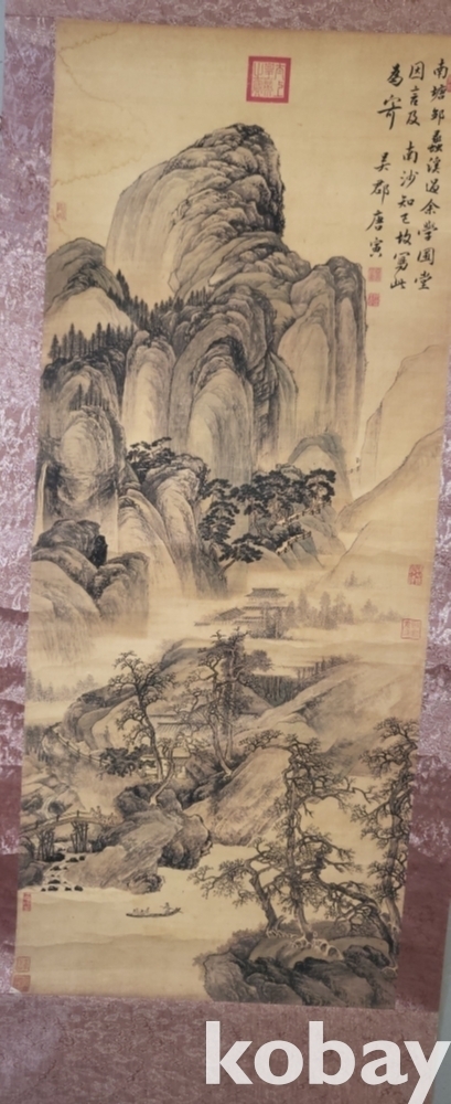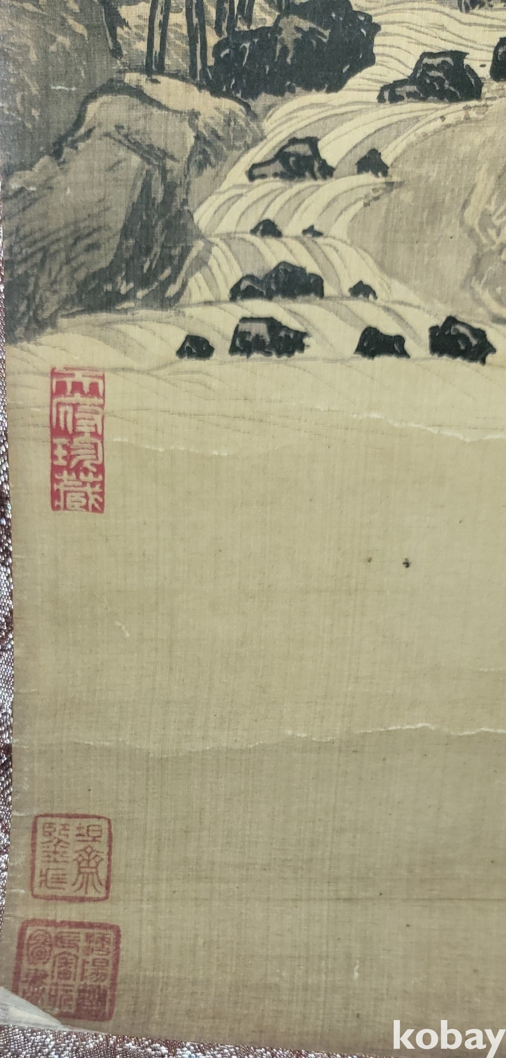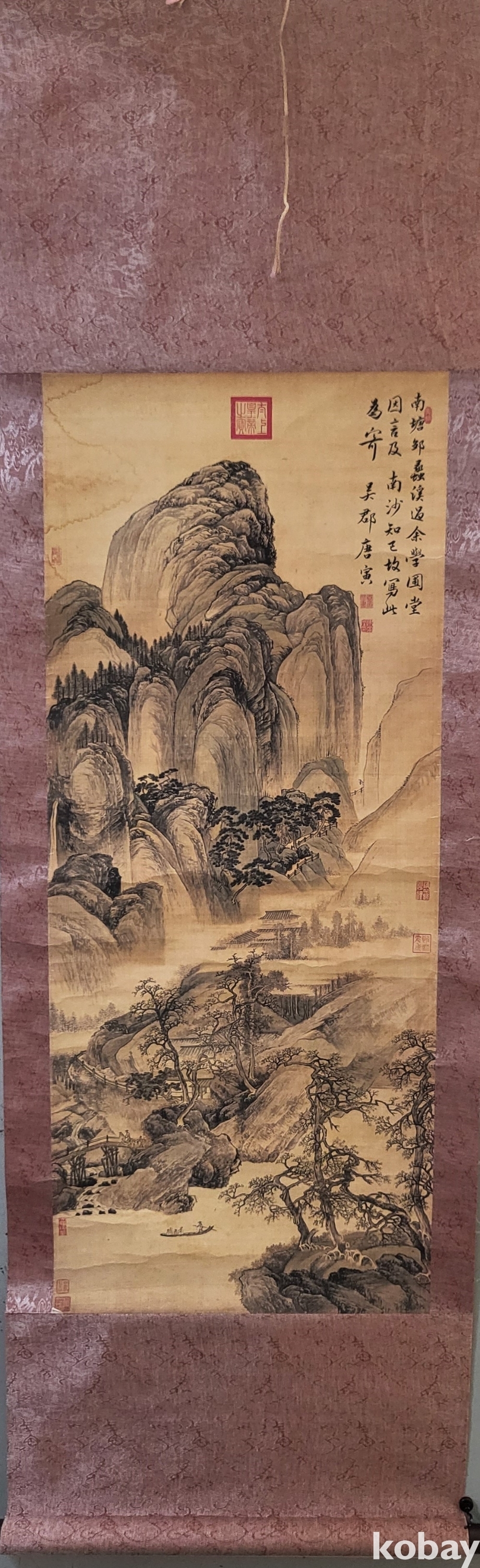 중국 명나라 화가 당인( 唐寅) 수결이 보이는 산수화 족자입니다,