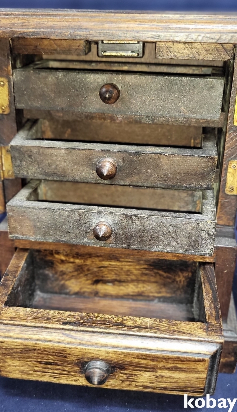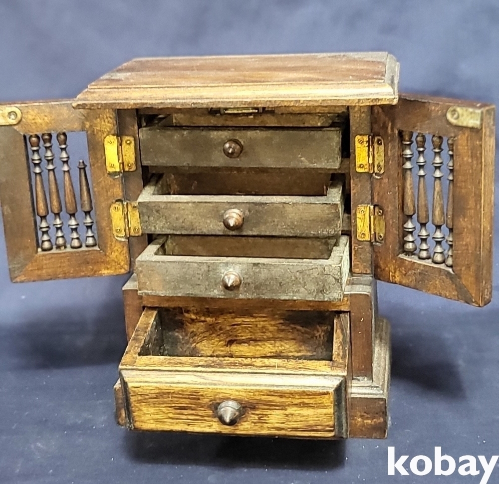 고급 나무로 만든 4개의 서랍을 갖춘 작은 장식장입니다,
