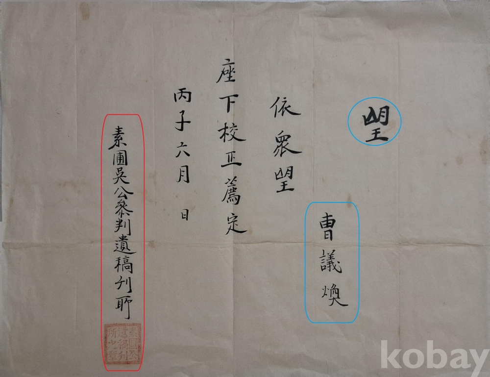 ◈ 소포(素圃) 오공(吳公) 참판(參判) 유고(遺稿) 간행에