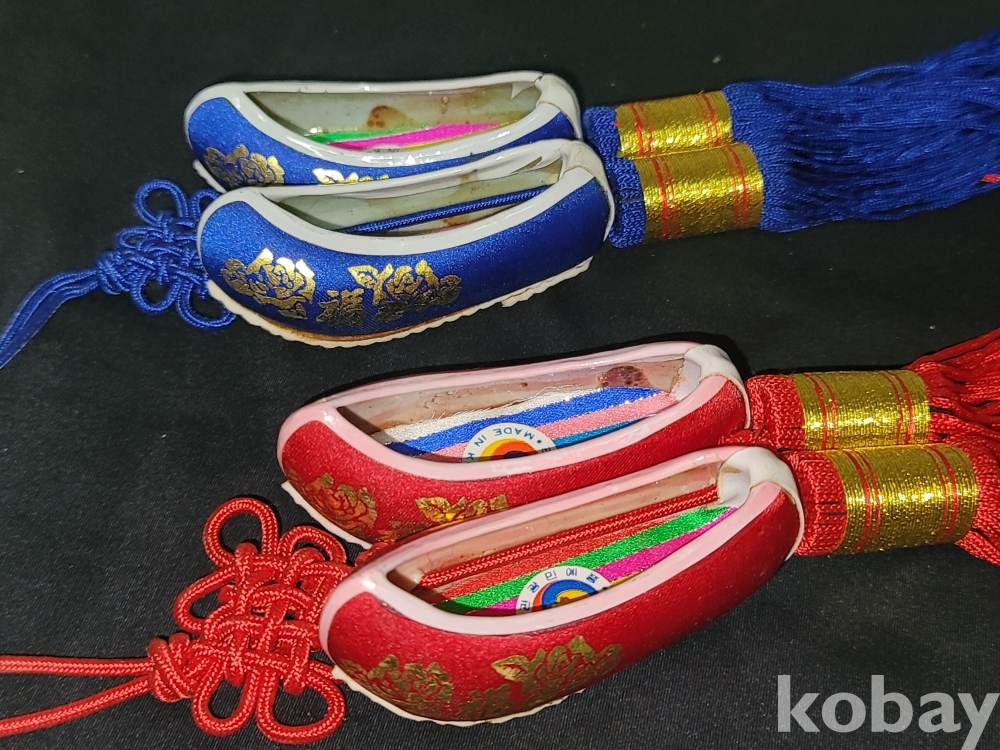 미니 전통신발 민속 공예품 리본 장식 2종 일괄입니다.