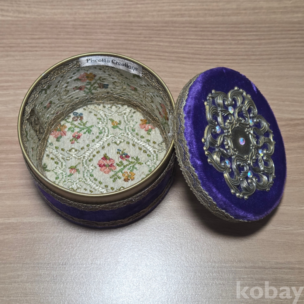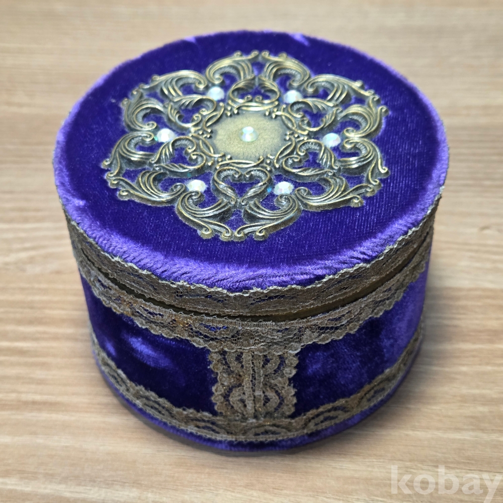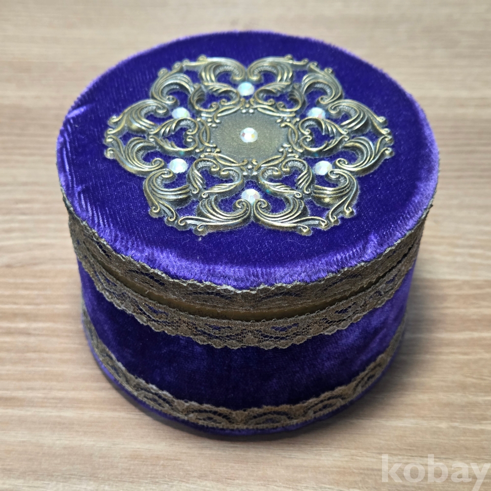 빈티지 퍼플 벨벳 자수 보석함입니다