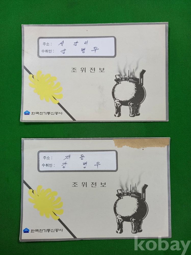 세월의 흔적 있으나 양호하며, 아래 전보는 상단 우측 종이 붙은 흔적 있습니다