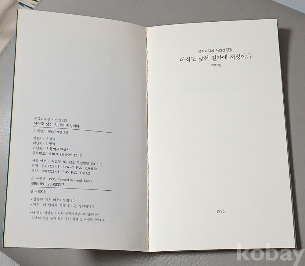 [초판본시집] 아직도 낯선 길가에 서성이다 - 유진택 1996년초판발행