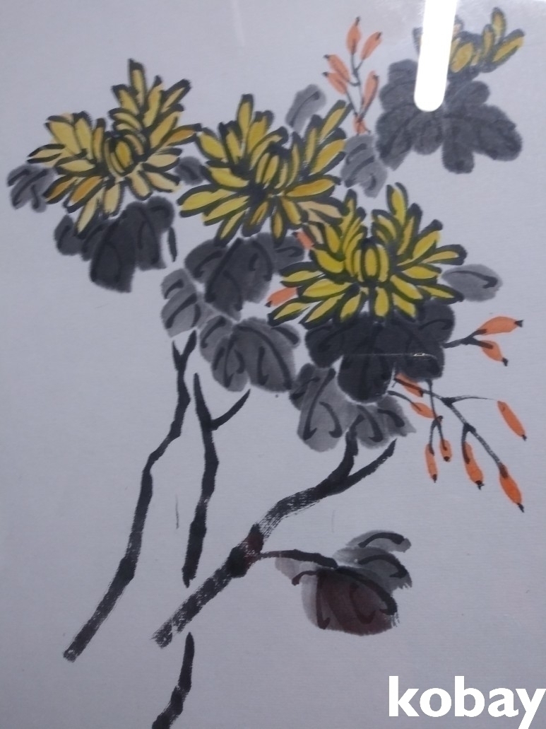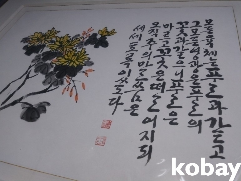 국화꽃에 좋은 말씀 글씨가 있는 액자 입니다.