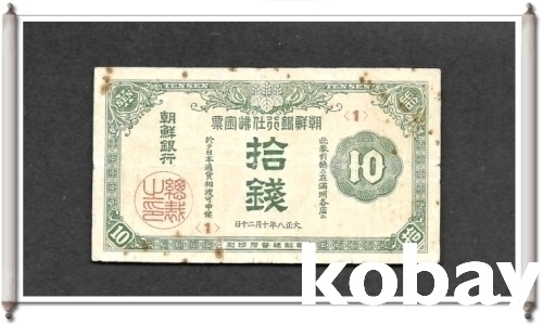 조선은행 10전권 지급어음입니다,