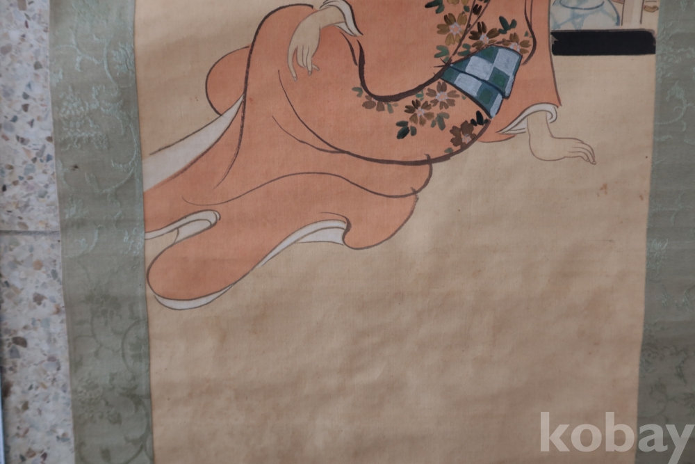 멋진미녀 족자 임니다 여백의 멋을 가진 당대의 명화 임니다 여름 하의 글자가 보이는 명작 임니다