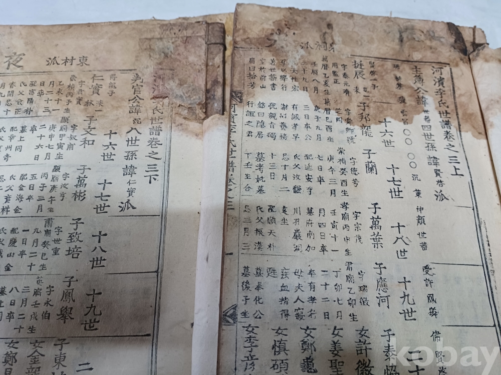 상태 얼룩여러책보이나 글씨손상은 크게 없습니다 뒤 발문 줘슬은 험 보입니다 하빈이씨 (河賓 李氏) 족보 좀처럼 보기 어렵습니다